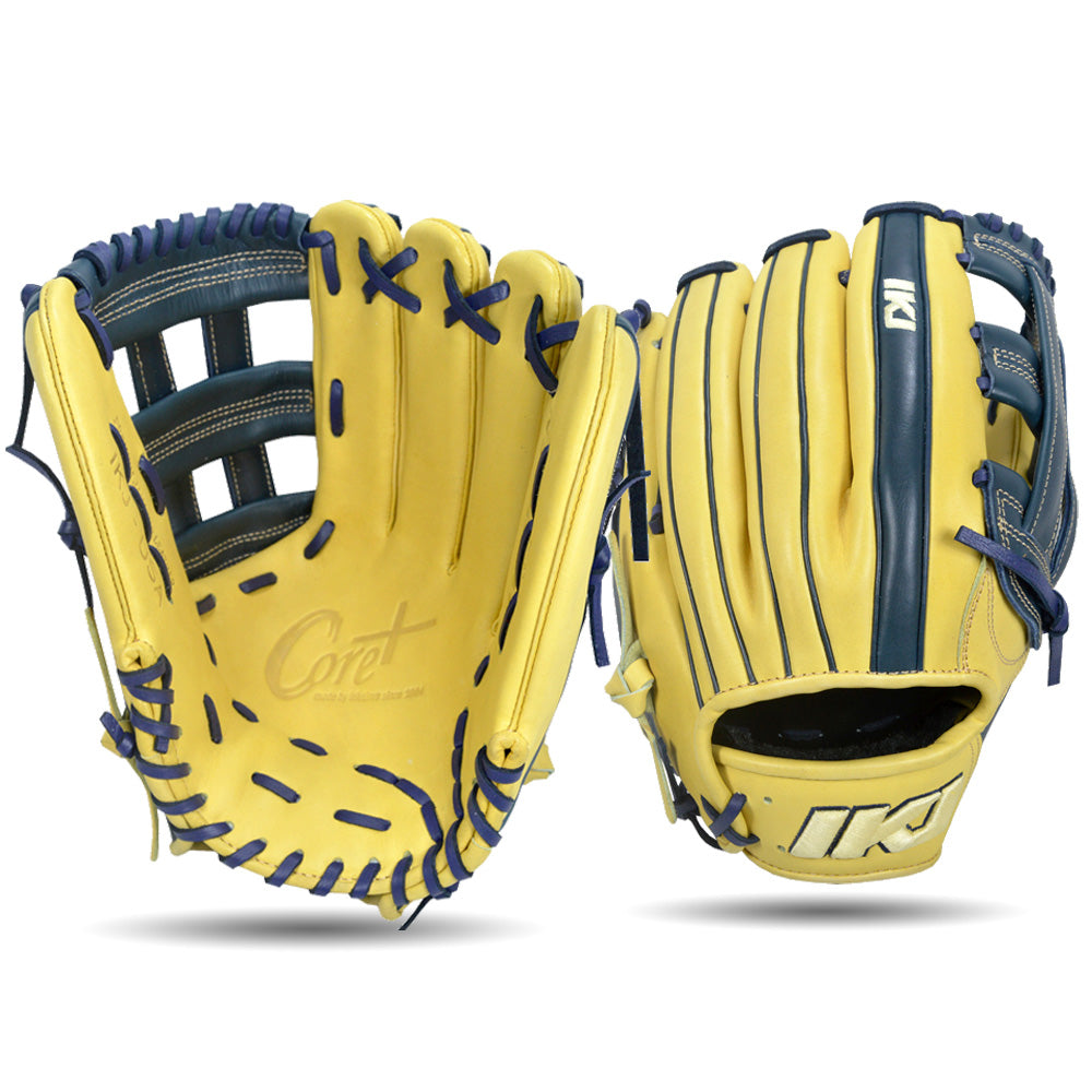 IKJ Core+ Series 12.75 INCH Double Welt Model OUTFIELD Baseball Glove in Camel and Navy for RIGHT-HANDED Thrower