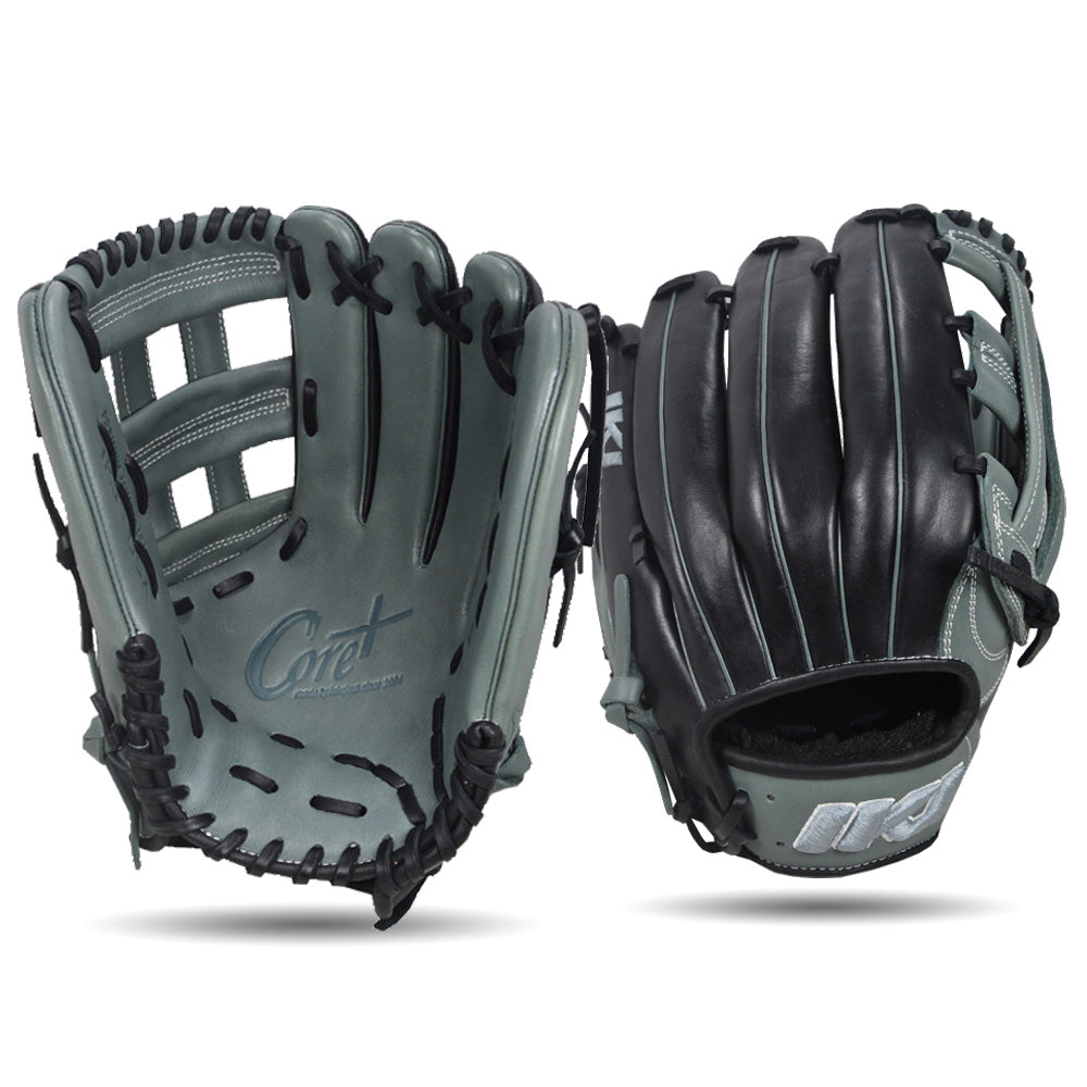 IKJ Core+ Series 12.75 INCH Single Welt Model OUTFIELD Baseball Glove in Gray and Black for RIGHT-HANDED Thrower